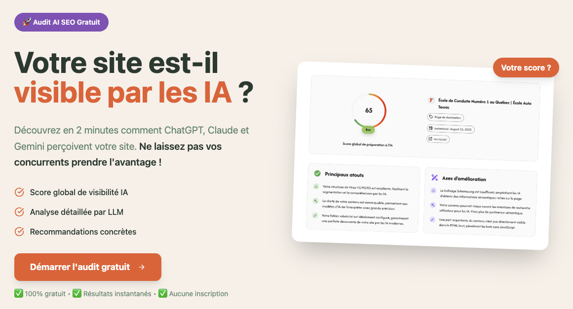 When visitors see an AI-powered audit that not only spots SEO issues but also tells them how AI systems interpret their content, your credibility skyrockets. You’re no longer just diagnosing SEO problems — you’re showing how visible they’ll be in the next generation of search.