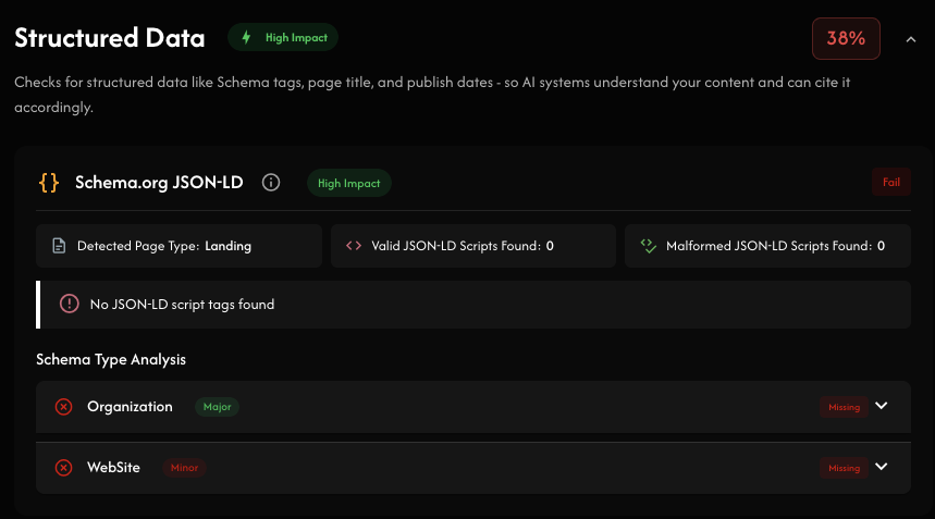 I noticed your pages aren’t using structured data and your content isn’t optimized for AI summaries — here’s how we can fix that.